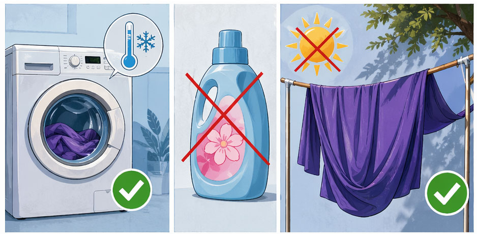 - Lavaggio delicato: lavare in acqua fredda (max 30°C). NON utilizzare ammorbidente (rende le fibre scivolose e ne riduce la resistenza). L'asciugatura all'aria aperta all'ombra è obbligatoria (i raggi UV danneggiano la plastica).