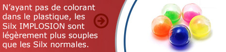 Silxballen zijn zachte PVC-ballen met een vloeibare siliconen vulling. Ze bestaan in 3 versies: Silx, Silx Implosion en Silx Light. De Silx zijn minder flexibel dan de Silx Implosion en de Silx Light zijn het meest flexibel omdat hun omhulsel het dunst is. Als je wat meer contact in je jongleerkunsten wilt brengen, raad ik je aan om voor de Silx te kiezen. Deze rollen iets beter. De diameters van 75mm en 78mm zijn wat mij betreft het meest geschikt om contact te maken. Tot een 5-ball is de 78mm -versie ideaal, daarboven kunt u beter kiezen voor een 75mm- versie.