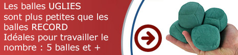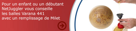 Om de trucs met de 3-ball te perfectioneren en vervolgens met de 4- en 5-ball te werken, kun je het beste de nadruk leggen op ballen waarvan de diameter niet te groot is. Hiermee worden botsingen voorkomen. De Sil-x ballen op deze pagina passen perfect. U kunt ook kiezen voor Varana 441-bollen met gierstvulling. Ze zijn iets zwaarder dan de Sil-x ballen en daardoor iets stabieler.Contact integreren in een 3-ball jongleren