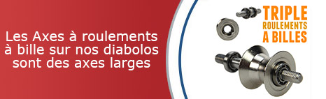 Drievoudige lagering voor ervaren diabolisten:De interesse voor een ervaren diabolist zal zijn om de excalibur-trucs (of vertax) te vergemakkelijken, waarbij de diabolo in een horizontaal vlak wordt gebruikt (met zijn as verticaal).