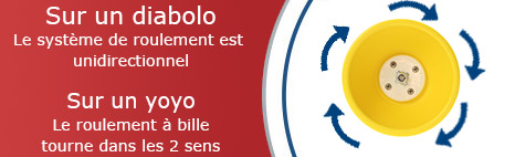 Dat is een uitstekende vraag! Bij een normale diabolo zit de as vast ten opzichte van de schalen. We kunnen het dus zowel in de ene als in de andere richting versnellen. Bij een model met kogellagers kan de diabolo slechts in één richting worden versneld. Het is geen kogellager dat in beide richtingen kan draaien, zoals bijvoorbeeld bij een jojo of een fietswiel, maar een unidirectioneel kogellager. De diabolo draait in één richting, maar blokkeert in de andere richting. Dit is essentieel om de pees grip te geven op de diabolo en hem snelheid te geven. Ik ga een vergelijking maken die mij aanspreekt. Vertel me vooral of het jou aanspreekt! Als je op de fiets in de ene richting trapt, gaat de fiets vooruit. Trap je in de andere richting, dan gaan de pedalen in de lucht ronddraaien. Hierdoor kan de fiets vooruit rijden zonder dat de pedalen volledig hoeven te draaien bij bijvoorbeeld afdalingen, waardoor de fiets snelheid kan maken! Lijkt het u zo wat duidelijker? Of heb ik je helemaal in de war gebracht?