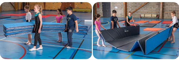 Cette aire d'évolution est faite pour le travail au sol avec réception de saut. Elle est fabriquée en 2 parties : une âme pour amortir (Marthus Gym 2) et une housse avec un revêtement PVC grain cuir sans phtalate, 650gr/m², non feu M2 et dessous antidérapant. La mousse Marthus® est une mousse recomposée à partir de chutes de mousse de polyéthylène. Ses propriétés d’usage sont supérieures aux mousses classiques. Elle a de très bonnes qualités d’amortissement, d’absorption de l’énergie et de répartition de l’impact.
