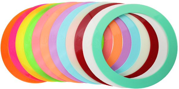 Pour l'apprentissage de ce type de matériel il est préférable de débuter par de grands anneaux qui permettent une plus grande stabilité dans les trajectoires de lancement ainsi qu'une bonne réception. Fabriqués en plastique ils sont légers et offrent un bonne résistance aux chocs. Du fait de leurs différentes tailles ils permettent une évolution dans la maîtrise de la précision du lancé et de la réception, préparant ainsi le terrain pour un futur travail avec des massues. Ils se déclinent dans de nombreuses couleurs.