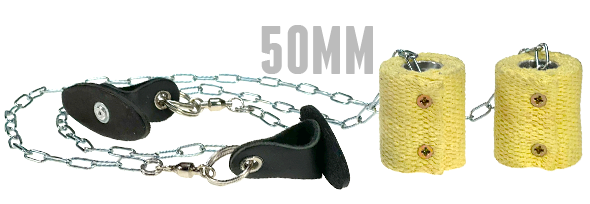 La chaine peut se régler en longueur grâce à un maillon. Vous pouvez soit laisser un bout de chaine ou bien couper l'excédent si vous êtes la seule personne à utiliser les bolas.