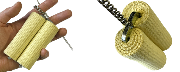 Sa particularité en fait l'une des paire de bolas feu les plus sécurisées. Livrées avec 100cm de mèche (10cm de largeur), soit 50cm sur chaque tête. On a affaire ici à des bolas imposantes qui font de grosses flammes. Attention, à ne pas mettre entre les mains de débutant. Le matériel de feu est réservé à une utilisation par des professionnels.