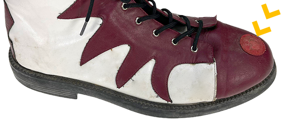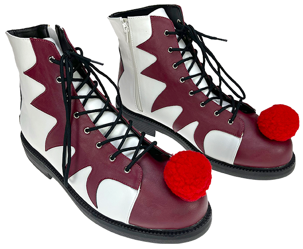 Ce modèle de chaussures de clown est destiné à une utilisation intensive et professionnelle. On est sur un style un peu Punk avec des couleurs pétantes.