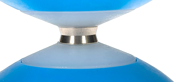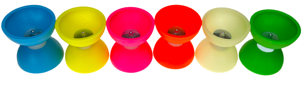 C'est un petit diabolo aux couleurs très vives qui ne demande qu'à jouer par tout temps sur tous les terrains de jeu. Les coques de ce diabolo sont en plastique souple très résistant.