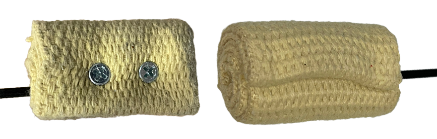 Sur ce modèle les vis sont cachées sous le kevlar. Lorsque vous aurez besoin de changer vos mèches, vous pourrez soit procéder de la même façon pour cacher vos mèches à savoir en repliant la fin de la mèche sur elle même en vissant depuis le côté. Soit en remplaçant vos mèches en laissant vos vis apparentes (plus facile à faire).