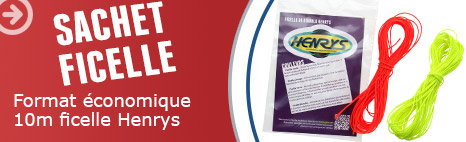 Pourquoi la ficelle Henrys est-elle le choix des pros ?Information pour les pros :La ficelle Henrys est à notre avis la meilleure, non pas pour sa couleur mais surtout pour sa fluidité lorsqu'elle est utilisée. Les frottements sur l'axe son minimisés. En évitant de l'utiliser dans un environnement humide ou poussiéreux, vous augmenterez sa durée de vie.