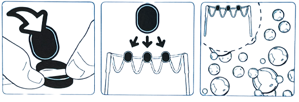 L'utilisation du filet et de la cordette absorbante en combinaison avec le liquide spécial XXL vous permettra d'entrer dans le monde des bulles XXL.