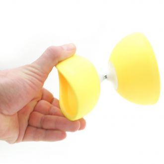 Il est de taille moyenne et le fait qu'il soit fabriqué en plastique souple fait qu'il peut être utilisé en intérieur comme en extérieur. Les coupoles de plastique de ce diabolo sont fabriquées en Europe avec un plastique qui a une excellente mémoire de forme ce qui signifie qu'il se déforme lorsqu'il tombe pour qu'il soit robuste et qu'il reprend aussitôt sa forme d'origine pour être bien équilibré et ainsi conserver une forme bien ronde.