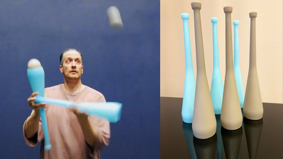 Drew et Jay sont passés par plusieurs itérations, utilisant l'impression 3D pour tester chaque nouvelle modification. L'étape suivante consistait à affiner la forme de la coupe pour qu'elle s'adapte parfaitement à une balle. Il y a un équilibre délicat entre la visibilité de la balle dans la coupelle et la facilité avec laquelle il serait possible de l'attraper. Maintenant en phase finale, cette collaboration a été rejointe par Niels Duinker, qui a utilisé son expérience dans la production de sa massue bouteille pour convertir toute cette R&D dans la nouvelle massue Cuphead. Elle est maintenant ici en vente chez NetJuggler :-)