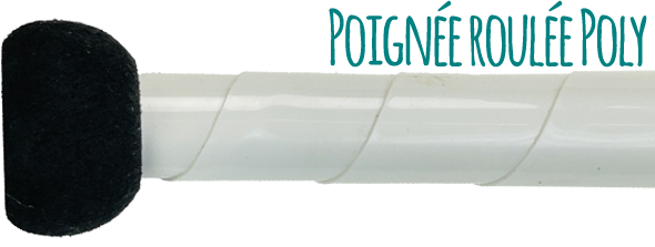 La poignée sur cette massue est en plastique blanc roulé, comme on a l'habitude de trouver sur les massues haut de gamme. Les embouts sont en mousse de type EVA. La forme arrondie de l'embout du bas rend ces massues idéales pour réaliser des équilibres tout en lui donnant une bonne prise en main pour faire du swing.
