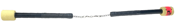 Nunchaku de feu léger dont les finitions sont soignées. Les bâtons sont conçus sur une structure en fibre de verre, recouvert d'un tube en silicone du côté des mèches. La poignée est recouverte d'un grip en mousse Gora pour la prise en main. Les deux parties sont séparées par une bande de caoutchouc de 3cm de large. Les 2 bâtons sont reliés par une chaîne recouverte d'une gaine de 14 cm de longueur.