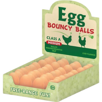 L’Œuf Rebondissant est une imitation réaliste d’un œuf de poule, fabriquée dans un matériau similaire à celui des balles rebondissantes. Il possède la forme, la taille et la couleur d’un œuf classique, mais rebondit de manière surprenante lorsqu’on le laisse tomber ou qu’on le lance sur une surface dure.