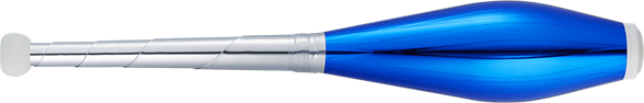 Les massues Pirouette sont d'excellentes massues. Elles sont légères, équilibrées, belles, solides et font partie des massues les plus appréciées des jongleurs. La voici ici dans une forme décorée avec les embouts blanc et un ruban adhésif réfléchissant : effet brillant métallique.