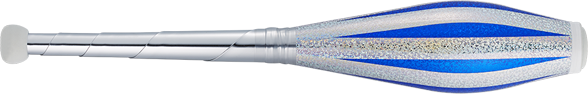Les massues "Pirouette" sont d'excellentes massues. Elles sont légères, équilibrées, belles, solides et font partie des massues les plus appréciées des jongleurs. La voici ici dans une forme décorée avec les embouts blanc et un ruban adhésif pailleté.