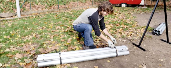 - Les sections des poteaux font 185cm de long et sont sanglés entre eux permettant un transport facile dans la plupart des véhicules.