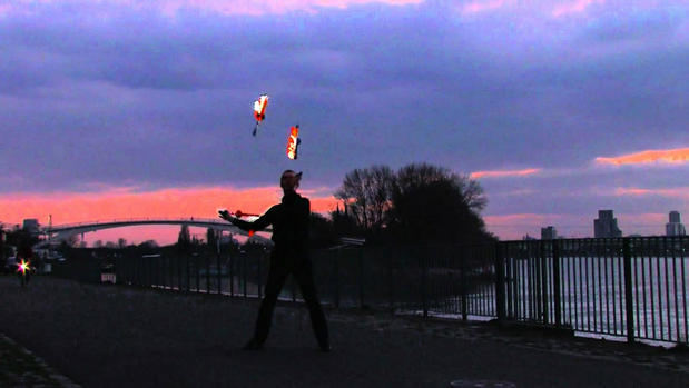 Sans les enflammer, les épées tournent moins qu'une torche. Il faut jongler davantage avec les poignets. Le centre de gravité est plus bas sur une épée que sur une torche. C'est un petit peu comme jongler avec des bâtons mais qui tournent tout de même un peu plus. En mélangeant une torche et 2 épées par exemple, on ressent bien la différence de rotation. Jongler avec 3 épées de feu sera hyper accessible pour un jongleur qui pratique déjà avec des torches ou des massues. Par contre, pour jongler avec 4 ou 5 épées, il va falloir "mettre du poignet" et retrouver des nouveaux repères.