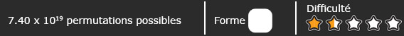 Ce cube propose un puzzle de variations de 4 x 4 x 4. Le niveau de jeu commence à être difficile avec ce modèle. Si vous maitrisez le 3 x 3 x 3, vous voici avec la suite logique ! Il vous faudra cependant acquérir une certaine expérience et persévérance pour arriver à le résoudre.