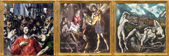 Ce cube a été décoré avec des oeuvres de Le Greco. Peintre d'origine crétoise (Candie 1541-Tolède 1614). Il appartient à un des grands mouvements artistiques de la Renaissance, le maniérisme (de bonne manière). Un grand peintre du siècle d'or espagnol.
