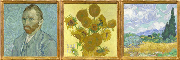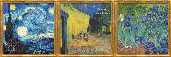Ce cube a été décoré avec des oeuvres de Van Gogh. D'origine néerlandaise (1853-1890) il passera une grande partie de sa vie en France auprès des peintres Emile Bernard et Henri de Toulouse-Lautrec. Peintre incompris de son temps. Son succès sera post-mortel. Ces oeuvres sont aujourd'hui très prisées.