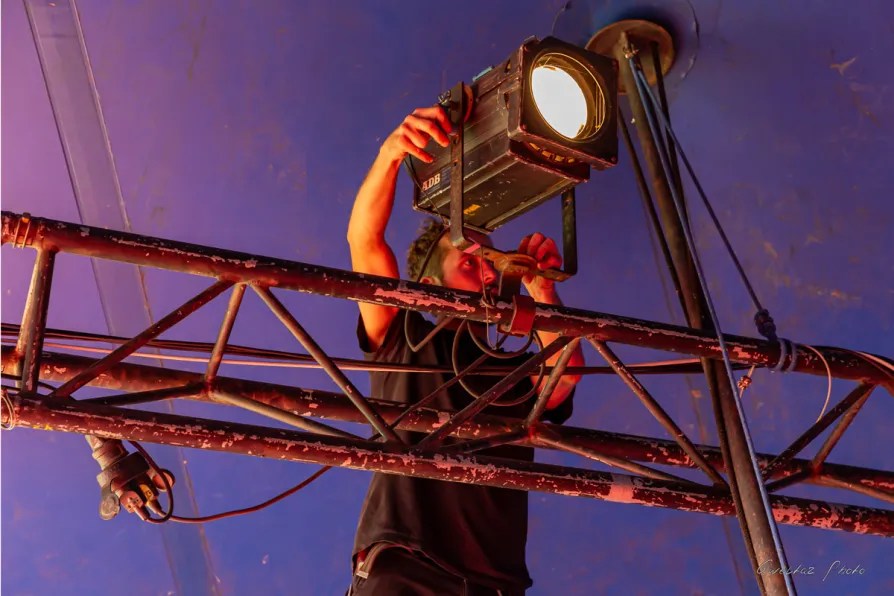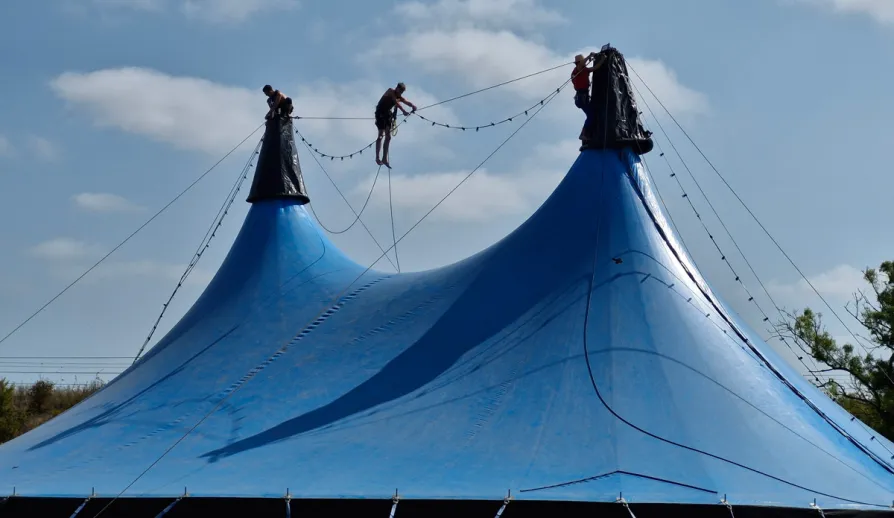 « Octobre 2010, Finistère. On annonçait du 100 km/h. La plupart des chapiteaux sont homologués pour ça, mais en rafales. Là , le vent montait fort. Le public s'est auto-évacué, l'ambiance changeait. Un laçage de 'chaussette' a lâché. Je suis monté sur le toit pour le refixer. Là , j'ai découvert ce que ça fait : le toit oscillait verticalement d'un bon mètre. Un trampoline géant ! Ma compagne m'a hurlé de redescendre. Elle avait raison. Quand la tempête est là , on ne sauve pas le matériel. On ferme tout et on protège les humains. »