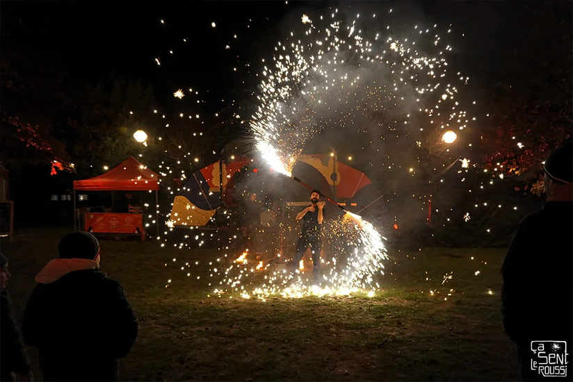 "Feux Rock" est un spectacle de jonglerie de feu époustouflant présenté par un duo de jongleurs.