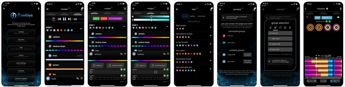 L'application Flowtoys est une application mobile puissante qui vous permet de contrôler tous vos accessoires de connexion Flowtoys, qui incluent pour le moment tout le matériel équipé des Capsules V2 et du matériel équipé du système Vision. (Les Flowlights n'ont pas de radio et ne font pas partie du système de connexion.)